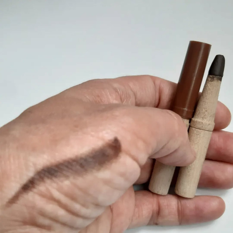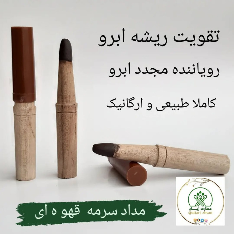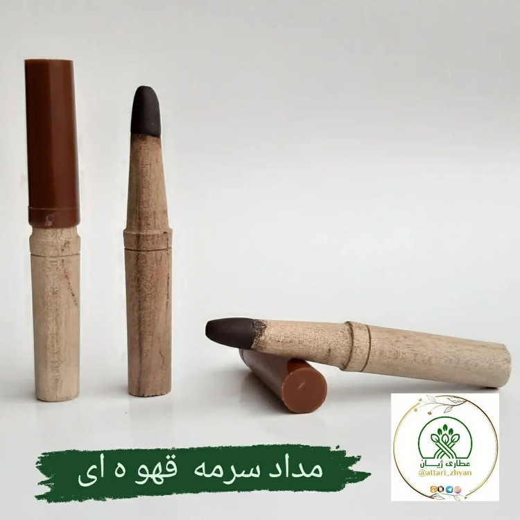کاملا گیاهی و ارگانیک بوده و در تهیه آن از هیچ گونه ماده شیمیایی استفاده نشده است. این مداد از سرمه چهار مغز، روغن بادام، روغن شحم و رنگ طبیعی قهوه ای تشکیل شده است. این رنگ از یک ماده معدنی طبیعی گرفته می شود ولی به دلیل وجود حساسیت در برخی افراد استفاده از این مداد برای داخل چشم توصیه نمی شود. زیرا ممکن است باعث قرمزی و آب ریزش چشم شود. بنابراین سرمه مدادی قهوه ای برای ابرو و لب بسیار مناسب است. این مداد ابرو باعث تقویت و پرپشت شدن ابروها می گردد و بهترین جایگزین برای مداد های ابروی شیمیایی و صنعتی موجود در بازار است.